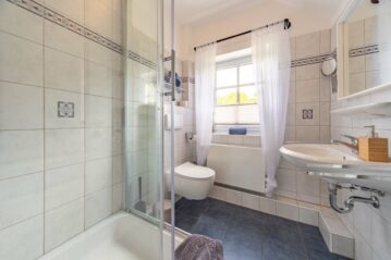 Die ca. 60 qm großen Ferienwohnungen sind komfortabel und geschmackvoll eingerichtet. Das Wohn- und Esszimmer bietet mit Sat-TV, DVD, Multimedia Soundanlage, W-LAN großen Komfort. Zwei Schlafzimmer mit einem Doppelbett und zwei Einzelbetten im 1.OG sorgen für einen erholsamen Schlaf. Das gepflegte Duschbad/WC befindet sich ebenfalls im 1. OG.