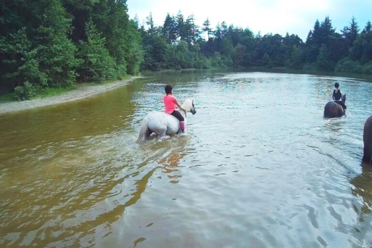 Auf dem Hof gibt es einen Reitplatz und eine Reithalle. Bei schönem Wetter werden Ausritte zum See gemacht, wo mit den Pferden geplantscht werden kann. Natürlich wird auch individueller Reitunterricht angeboten.
